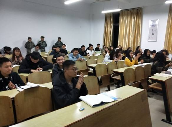 12月4日晚,XC体育新校区校卫队的队员来到了工商管理专业进行了以"防火,防盗,防抢"为主题的下班宣传。