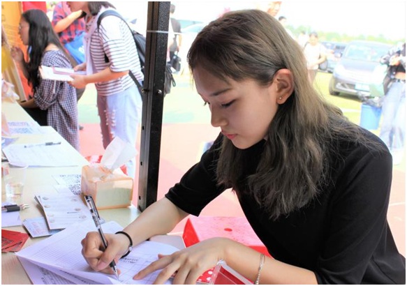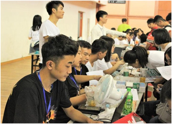 员工会干部在体育馆为新生办理手续