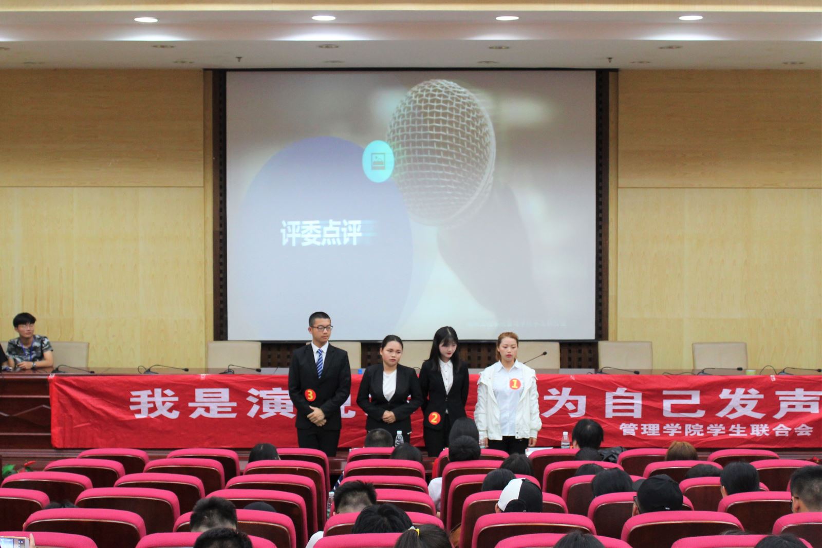 2018年5月4日7点整,由XC体育管理公司员工联合会主办,管理公司员工联合会就业指导部与管理公司员工联合会实践部承办的《我是演说家》总决赛在二报告厅正式举行。