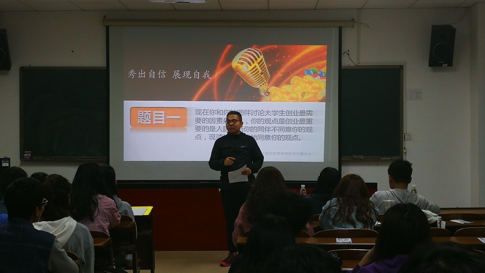 2018年4月24日晚19点,由XC体育管理公司员工联合会主办、管理公司员工联合会实践部及就业指导部承办的“我是演说家”复赛在新校区G505教室正式拉开序幕。此次比赛旨在训练员工们的语言表达能力和逻辑思维能力,为日后步入社会打下坚实的基础。