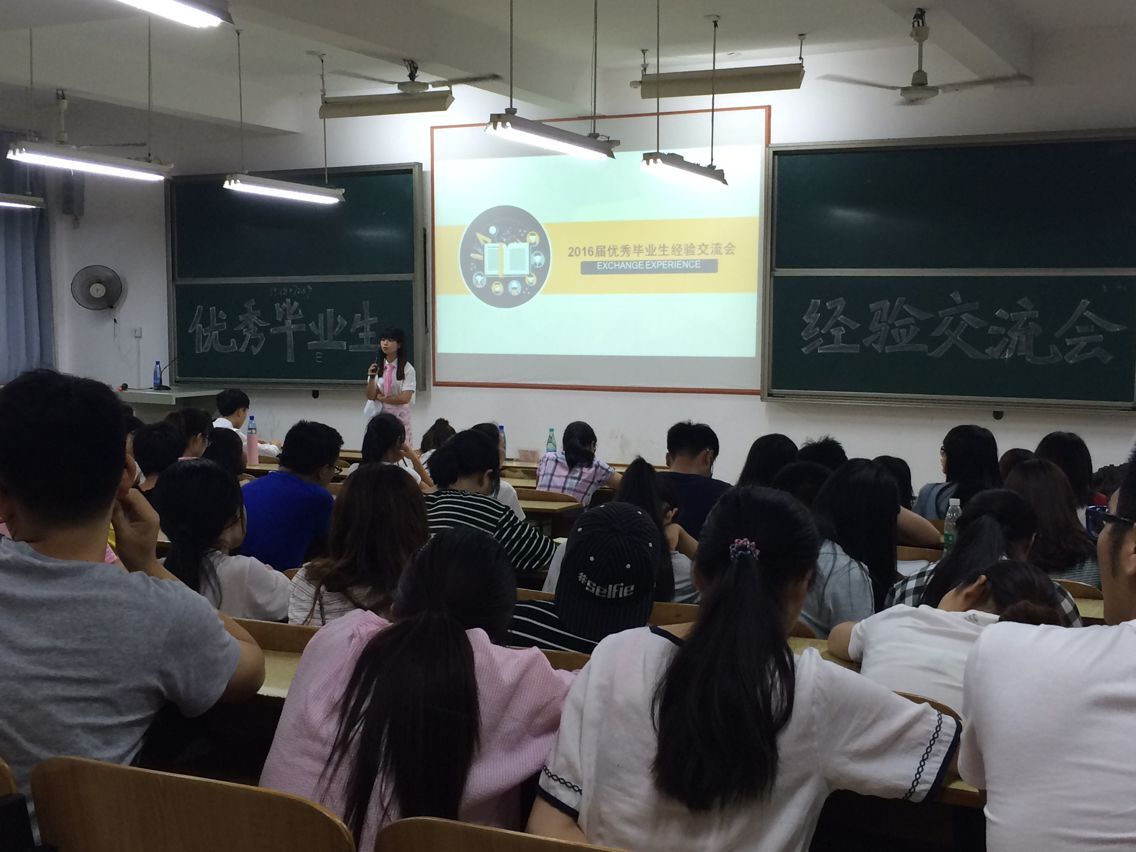 6月1日晚上七点半,由管理公司就业指导部组织开展的优秀毕业生经验交流会在教学楼D301准时举办。本次交流会邀请到七位来自管理公司各个专业的2016届的优秀毕业生,从学习、参赛、就业面试、考银行、考公务员等多个方面分享了自己的亲身经历和取得的成绩,嘉宾们各抒己见、踊跃发言,畅谈对专业、对工作、对社会和对人生的感悟。管理公司学办主任罗荃老师出席交流会,200余名在校员工到场聆听。