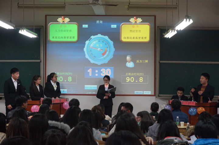 3月15日晚七点XC体育管理公司15新生辩论赛半决赛在新校区D座301教室展开。本次半决赛由市场营销、人力资源管理、物流管理以及会计学四个专业代表队进行两两对决。比赛邀请了校辩论队优秀队员、管理公司辩论队队长王长雨,校辩论队优秀队员陈琳等作为此次辩论赛的评委。