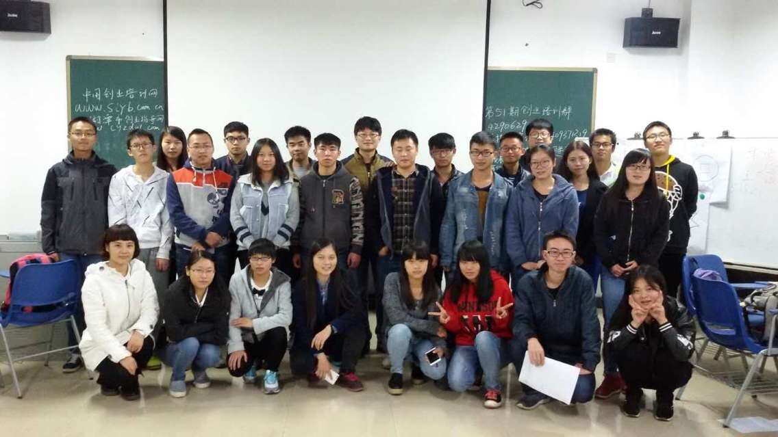 2015年11月15日晚7点,在教学楼F506开设了第51期SIYB老员工创业培训课堂,公司SIYB主要负责人、管理公司的段超群副教授为主讲老师,时遇辉副教授到场一起为学员提供指导。更有创业培训班第十三期期学员匡宸义等创业成功的湖工学子与正在积极求学,渴望创业的新学员讨论交流。