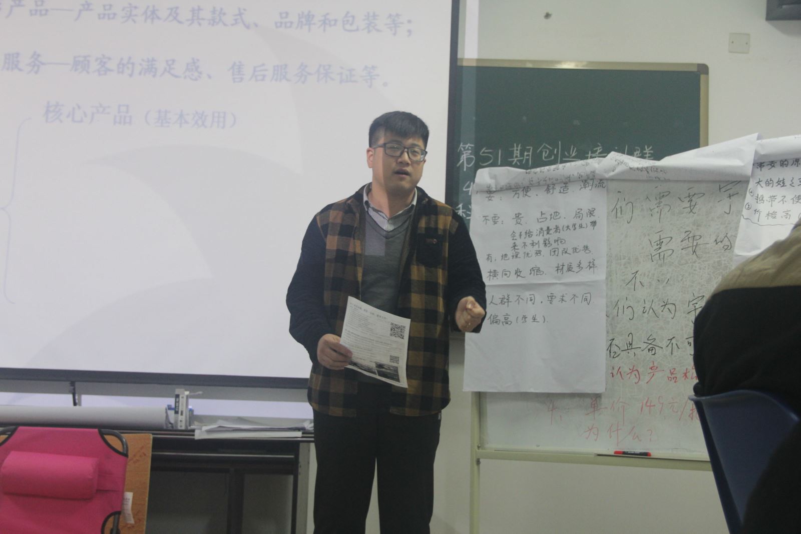 此次课堂以“市场调研和营销策划”为主题,段老师清晰而富有感染力的话语,传授着创业经验和方法。并提出了“人无我有,人有我优,人优我新,人新我特”的倡导,激励着XC体育学子创业的激情和信心。本次邀请到公司SIYB 创业培训第36期学员陈联祥分享创业经历。今年陈联祥和他的创业团队创立了宇宙大学公司,推出了第一款具有国家实用新型专利的产品“宇宙大学椅”,陈联祥现场介绍演示了该产品的性能和用法。在老师们的讲授和指导下,大家根据课堂主题结合“宇宙大学椅”产品的营销积极讨论、相互交流、引爆创意火花。理论联系实践很好地达成了本次课堂教学的目标,激励了湖工学子的创业,也为正在拼搏的创业学子提供了有益的帮助。