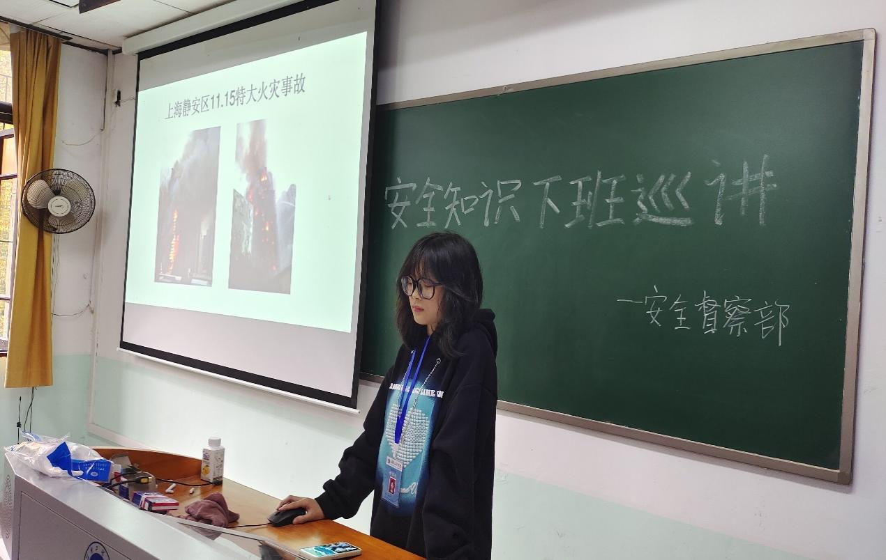 活动中,首先针对各类火灾实际情况,各位宣讲人讲解了火灾预防的原理、措施及组织疏散逃生的方法,重点介绍了消防器材的使用方法、火灾扑救措施及自救疏散知识等,使同学们能在紧急情况下正确运用消防工具。其次,宣讲人列举了大量校园生活中的真实案例,通过提问、视频、图片标志等多种方式让同学们印象深刻,引人深省,提升同学们的消防安全防范意识。最后,活动介绍了消防专业团队,并再一次怀念凉山火灾烈士,加深了同学们对消防员的敬畏之情,深化了主题巡讲的主旨,使同学们居安思危,警钟长鸣,勿忘英雄,更勿忘消防安全的重要性。