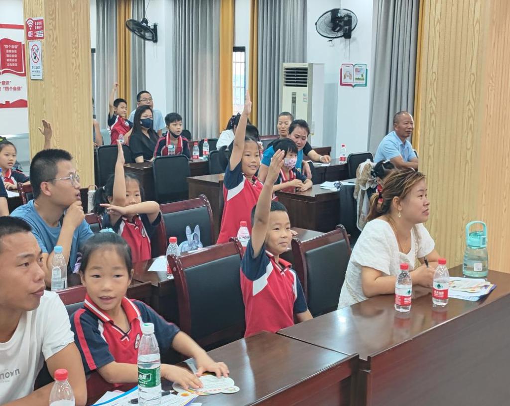 为使党史教育更有实效,实践团根据党课内容设置了知识竞答环节,检测小朋友的学习成效。小朋友们各显身手、踊跃答题,现场气氛高潮迭起,在场家长们也被热烈的气氛所感染,一同加入答题行列中。