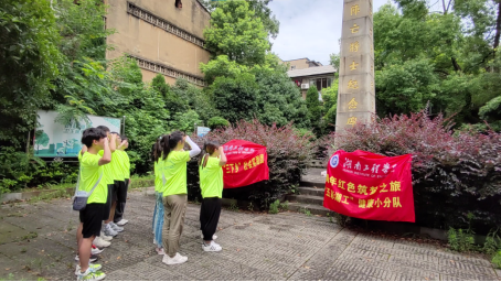 实践团一行从公司出发,步行前往抗日阵亡将士纪念碑祭奠英烈,带队老师向团队成员讲述了抗日战争时期,湘军浴血奋战、守卫湖湘的故事,并带领团队成员于纪念碑前重温入团誓词。