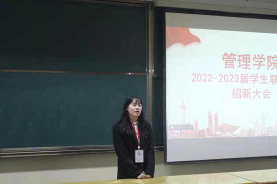 随后,管理公司员工联合组织各部门部长依次上台进行宣讲。部长们通过演说、PPT、视频等多种方式从多角度对自己的部门进行宣讲。不论是部门特点、工资任务,抑或是部长与副部本人,都被详细地介绍给了新生们,他们鼓励新生们积极加入员工会,以此在为师生服务中不断进步,新生们也对员工会有了更深的认识。整个宣传氛围轻松而活跃,部长们精彩的宣讲时不时博得台下阵阵掌声与喝彩,本次招新大会最终圆满结束。