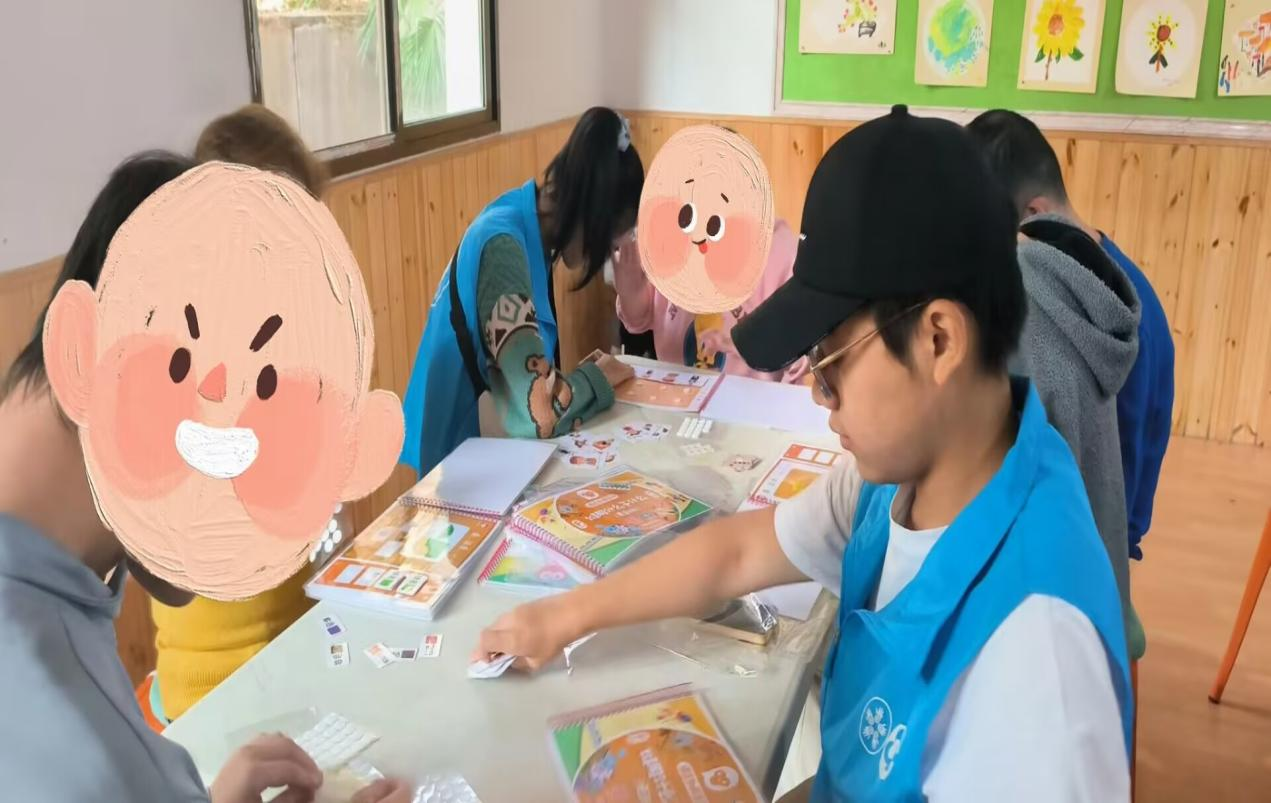 活动开展前,亲园老师选了三个志愿者陪亲园的小伙伴们做运动,有打乒乓球的,也有打羽毛球的。然后,亲园托养中心的老师耐心地教导其余的志愿者们如何教残障学员制作绘本,在老师解释了几种不同绘本的制作方法之后,志愿者们开始了一对一的教学。首先,志愿者们要帮助学员在绘本中找到图案的中心点;其次,在中心点位置贴上AB胶;再次,将绘本对应的卡片贴入AB胶方框内;最后,志愿者们帮助学员检查一遍并指导其将绘本装入包装袋内才算任务完成。在教学过程中,志愿者们都很耐心地指导学员,学员们很感兴趣都做得十分认真和开心。到最后,在所有志愿者与学员的努力下,完成了三十多本教材,远超过亲园老师给我们的目标,学员们学会了自主制作绘本,增加了工作经验,志愿者们也积累了社会经验。