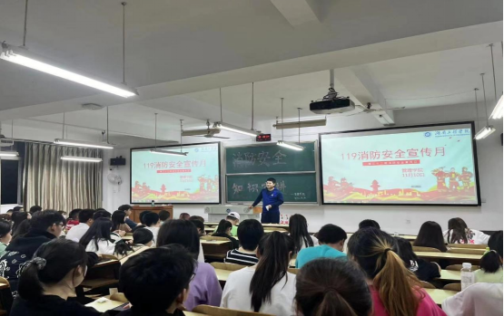 居安思危,思则有备,有备无患,才能防患于未然。为确保全院师生消防知识的掌握、自救能力的培养,进一步提高个人的消防意识,11月10日晚,管理公司在主校区D栋203教室举行以“119消防安全宣传月”为主题的专题安全讲座。湘潭市高新区书院路消防救援站警官付轩应邀主讲,全院各班班长及团支书参与。