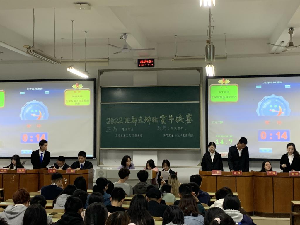 为提高管理公司学子的语言思辨能力,丰富老员工活,11月27日晚七点到九点在XC体育主校区教学楼D栋102教室举办了面向2022级新生的辩论赛半决赛。管理公司辩论队成员就“医学发展应不应有伦理界限”这一论题展开了激烈的辩论,此次辩论赛吸引了广老员工关注。