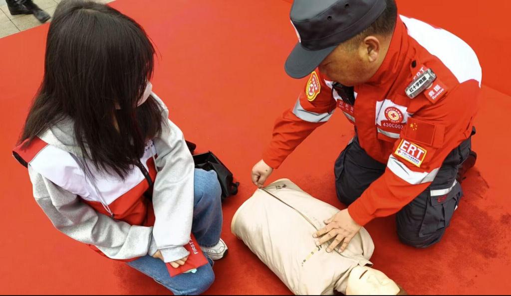 在启动仪式上,首先播放了一些红十字相关的视频,为同学们介绍了此次活动的宗旨:“守护生命与健康,红十字就在身边”。接下来,周艳希副市长为长株潭三地的红十字青少年志愿者团队授旗,志愿者们进行宣誓。然后,红十字志愿者表演了相关情景剧,演练抢救流程,向观众普及心肺复苏等急救知识与技能。活动还设置了《生命教育·救在身边》红十字应急救护体验区,参与活动的人员可以进行应急救护体验,提高急救方面相关知识。