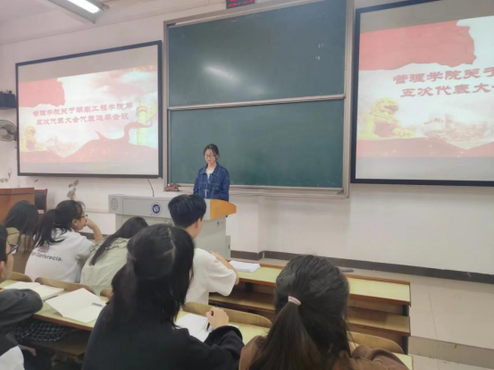 本次员工代表大会同学们以严谨负责的态度对待,充分发挥了民主精神,尊重每位同学的民主权利,班委会严格按照民主集中制的原则进行推选,采用无名投票的形式初步选出代表候选人名单(少数民族代表、各类先进模范人物在代表构成中需占有一定的比例),员工代表中要求有各级员工干部、先进集体(优秀团支部、活力团支部、优秀班集体等)的代表和先进个人优秀团员、优秀员工干部、三好员工等),并覆盖各公司、年级及主要社团,其中、院员工会工作人员的代表一般不超过40%,女性代表一般不少于25%,各公司员工总人数1%的比例选举产生代表,组建成四个代表团。