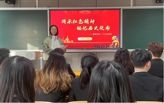 为深入传承红色精神、铭记历史使命,管理公司于11月26日下午在主校区A307举办了“红色基因,代代相传”主题团日活动。活动由管理公司团总支书记李林老师主讲,吸引了各专业团员代表参加。