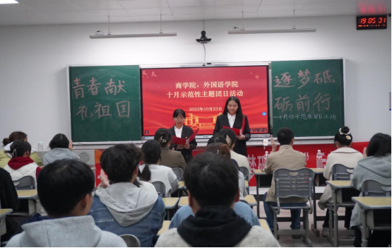 为深入学习贯彻习近平新时代中国特色社会主义思想,引领青年学子厚植家国情怀、勇担时代使命,10月23日晚,在校团委的指导下,XCSport于在主教学楼C309教室联合举办了“青春献礼祖国,逐梦砥砺前行”示范性主题团日活动。校团委副书记涂璐、商公司党委副书记谭超、XCSport团委书记邹牡燕、XCSport团委书记彭虹出席活动,英语2501班、电子商务2401班全体同学共同参与。