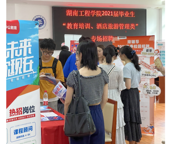 5月14日下午14:00至17:00,长沙美楠电子商务有限公司、湖南腾思教育发展有限公司、普瑞酒店有限责任公司、湖南云学贝教育科技有限公司等40家企业在公司新校区图书馆122、123会议室举办了针对2021届毕业生“教育培训、酒店旅游管理类”专场招聘宣讲会。这次招聘会为公司应届毕业生提供了一个良好的就业信息交流平台,也让公司的大一、大二的员工对招聘会有了切身休验,有利于他们明确方向、找准目标。
