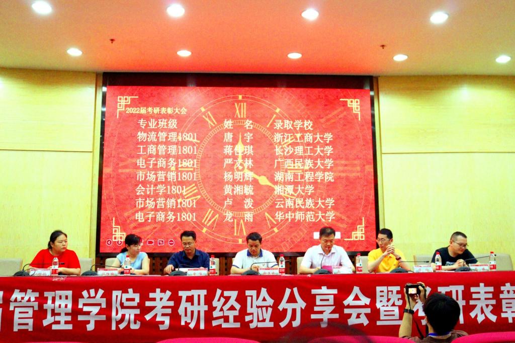 为表彰在2022年全国硕士研究生考试中取得优异成绩的管院学子,同时,为存在考研相关疑问的同学提供经验分享交流机会,6月10日19点至21点,XC体育管理公司于新校区图书馆二报告厅成功举办了2022届管理公司考研经验分享会暨考研表彰大会。考研表彰大会由管理公司党委副书记谭超主持,到场领导包括管理公司经理徐运保,党委书记余博,副经理潘立军、张维梅,院办主任单艳艳,学办主任黎博,2022届管理公司考研优秀毕业生,管理公司大二、大三各班级代表参与会议。